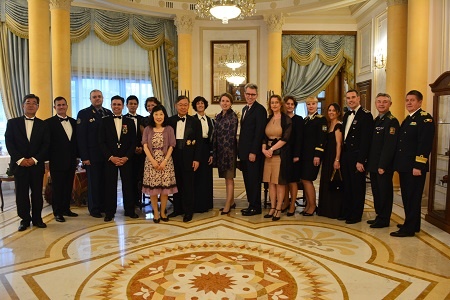 2016年5月25日,角大使夫妻は,大使公邸において,当地武官団とウクライナ国防関係者を集めた会合を開催しました。会合には,パイアット米大使夫妻,ゴウ英大使,デュモン仏大使,ウクライナ軍参謀本部クレメネツキー少将ほか,米仏独ルーマニアの駐在武官などが出席しました。
