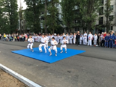 ルビジュネ市での桜の植樹式には,ホールティブ・ルビジュネ市長,リシューク・ルハンスク州行政府副長官,UNICEF及びUNDP関係者,さらには柔道や合気道を習う大勢の子供達を含め約300人の市民が参加する中で盛大な式典となりました。ホールティブ・ルビジュネ市長からは,日本からはルビジュネ市民病院及び障害児社会施設の改修で支援いただいており感謝申し上げる,今回植える桜が日本とウクライナの友好の象徴になることを期待する旨の挨拶がありました。原田公使参事官からは,今回の桜はウクライナで活動する日本企業からの寄付金によって実現できたものであり,毎年桜を見るたびにぜひそのことを思い出してほしい,日本には花見という文化があるが,またこの地を訪れて皆さんと美しい桜を楽しみたい旨述べました。