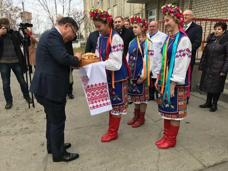 同州の北部にあるクレメネツィでは,同地区にある公立病院において,草の根・人間の安全保障無償資金協力により供与された医療機材の引渡式に出席しました。同引渡式には,病院長や地元住民に加え,州や地区の行政府高官らが参加し,日本から供与された機材(超音波診断装置等)により地元で対応できる検査が増えたとして,日本政府に対する感謝の意が伝えられました。