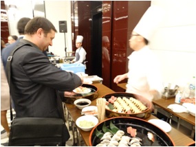 An “Ikebana”, Japanese flower arrangement, was displayed at the venue and traditional Japanese cuisine, sushi, was demonstrated by the Ambassador’s chef to introduce charms and culture of Japan to the Moldovan people.