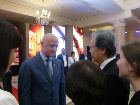 記念式典の様子 トゥルハノフ・オデッサ市長(左側)